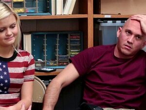Une mignonne coupable se fait baiser. Une mignonne coupable se fait baiser et finit avec une éjaculation faciale après un vol à l'étalage