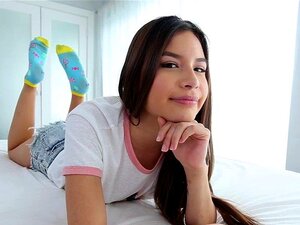 La mignonne brune maigre Zaya Cassidy. La mignonne brune maigre Zaya Cassidy se déshabille et est choquée de voir une énorme bite. Elle la prend dans sa bouche et l'essaie dans sa chatte, elle rentre dans sa petite chatte et profite de chaque centimètre à
